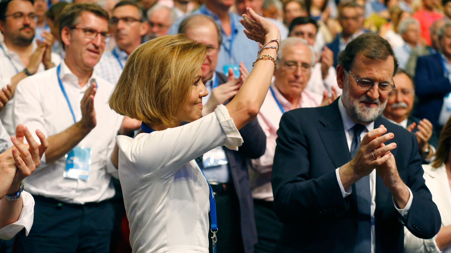 Dirigentes del PP han hecho un llamamiento unánime a cerrar el cónclave del que saldrá el sucesor de Mariano Rajoy con unidad y un partido "reforzado" sea quien sea el elegido, entre Pablo Casado y Soraya Sáenz de Santamaría. El presidente del PP de Galicia y de la Xunta, Alberto Núñez Feijóo, que no se ha pronunciado públicamente sobre el candidato al que respalda, ha instado a que el nuevo líder salga del Congreso sin "presiones" y "sin el dedeo infalible de uno o varios presidentes autonómicos".