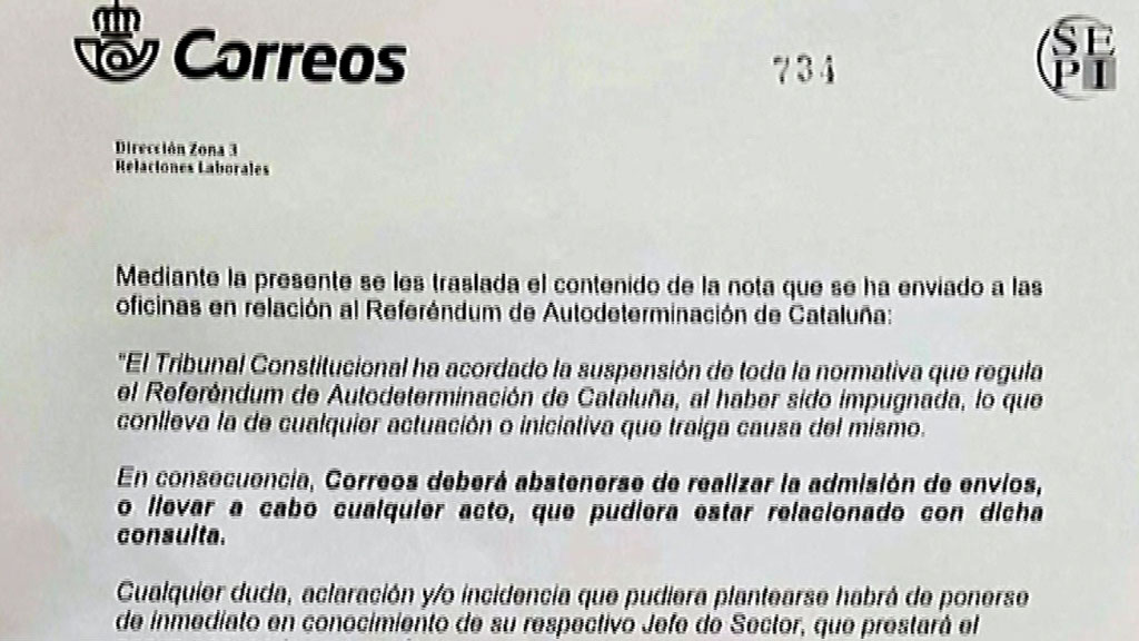 Correos no repartirá las cartas con las que el Govern convocará a los miembros de las mesas electorales para el referéndum