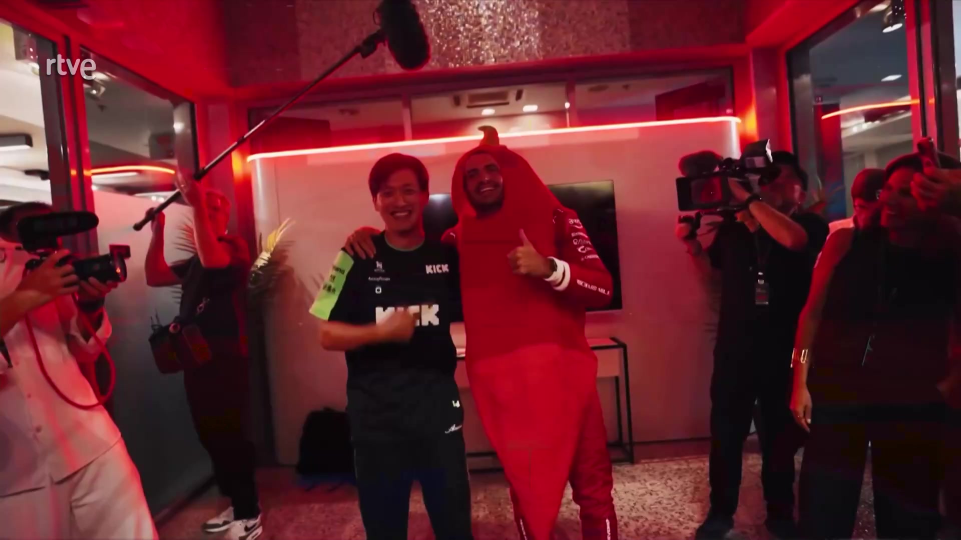 Carlos Sainz se despide de Ferrari junto a su padre y disfrazado de pimiento