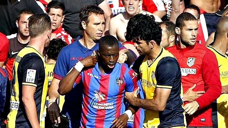 El jugador del Levante CF Pape Diop ha asegurado que parte de la afición del Atlético de Madrid congregada en el Ciutat de Valencia este domingo, emitió gritos racistas cuando iba a lanzar un saque de esquina justo antes del pitido final del duelo que ganaron los locales (2-0) y por ello bailó, para quitarle importancia, cuando terminó el encuentro en ese mismo instante. "Iba a sacar un córner y parte de la afición del Atlético empezó a hacer gritos de mono. Para quitar hierro, me puse a bailar, pero no insulté a nadie. No tengo nada contra la afición del Atlético porque sólo ha sido una parte la que ha gritado", añadió.