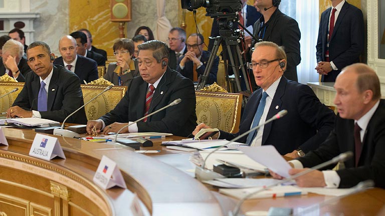 Aunque el conflicto sirio no figuraba incialmente en la agenda del encuentro, los veinte mandatarios han conversado al respecto durante la cena, tal y como ha propuesto el anfitrión, el presidente ruso Vladimir Putin. El Primer Ministro británico, David Cameron, ha anunciado que Londres posee nuevas pruebas del uso de armas químicas en Siria.