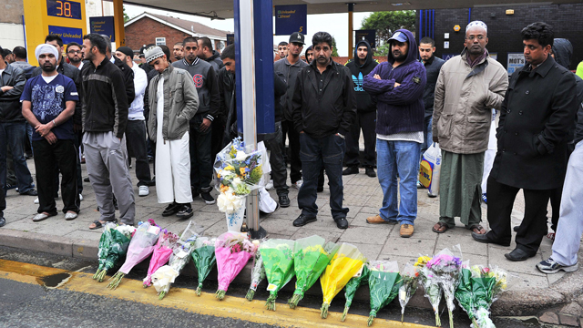 Los vecinos lloraban en una vigilia la muerte de tres jóvenes musulmanes (de 21, 30 y 31 años), atropellados cuando vigilaban los comercios de su...