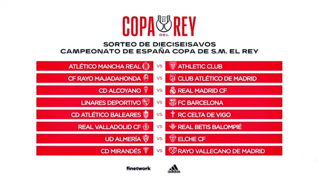 Alcoyano - Real Madrid, Rayo Majadahonda - Atlético de Madrid, Mancha Real - Athletic de Bilbao, y Linares - FC Barcelona son los cuatro...