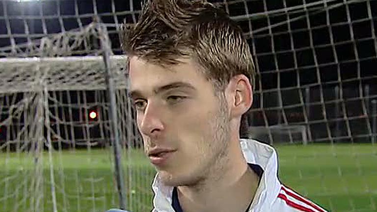 08/11/2011 00:02:37La selección española absoluta juega los dos últimos partidos amistosos del año, el próximo sábado ante Inglaterra en Wembley y el martes 15 de noviembre ante Costa Rica en San José, la capital costarricense. Pero también la 'Rojita', es decir, la selección Sub-21 tiene sus enfrentamientos. El próximo jueves tiene su partido clasificatorio para el Europeo de la categoría en 2013 ante Estonia y el lunes ante Suiza. En la concentración de la selección Sub-21 estuvo TVE con el portero de la 'Rojita' y del Manchester United, David De Gea. "Hace fresquito en la ciudad inglesa. Tengo que aprender inglés y lo estoy haciendo poco a poco", decía sobre su estancia en el conjunto británico. "Ahora estoy disfruntándolo al máximo y espero poder estar muchos años allí", comenta. Y sobre los 25 años de Ferguson como técnico del United, De Gea solo tiene elogios para su entrenador. Ahora el portero español se centra en los encuentros de la selección y pide el apoyo a todos los aficionados.