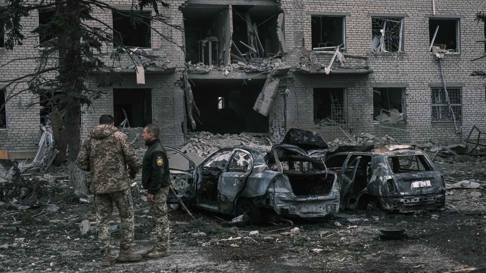 Foto: Investigadores inspeccionan los daños tras un ataque con misiles en Sloviansk, región de Donetsk, Ucrania. EFE/EPA/MARIA SENOVILLA
