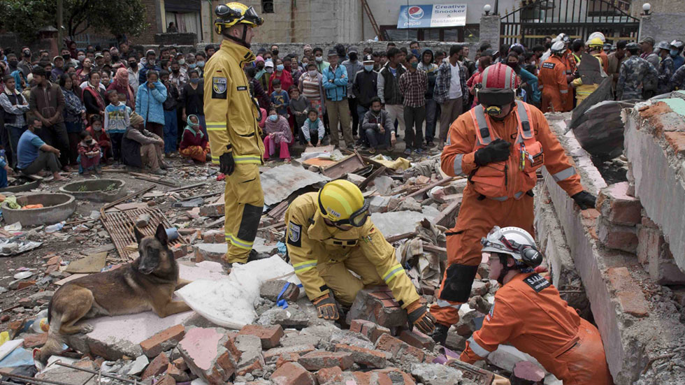 Habitantes y turistas colaboran en las labores de desescombro en Nepal.