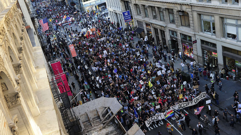 En la Gran Manzana, las concentraciones confluyeron en Union Square con un acto en el que se han unido sindicatos y organizaciones comunitarias y de inmigrantes, para después recorrer el distrito financiero.