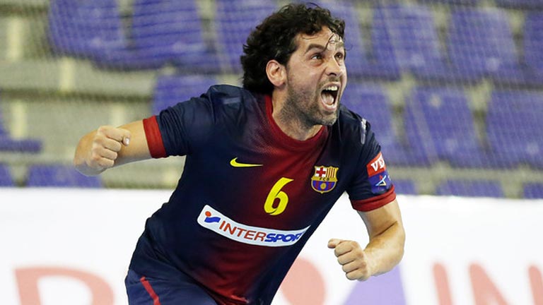 El jugador del FC Barcelona Intersport Juanín García se ha convertido en el primero en lograr marcar 2.000 goles en la liga ASOBAl de balonmano. El leonés le marcó siete tantos al Freikin Granollers en un partido que el Barça dominó desde el inicio y sentenció tras el descanso. (31-03-13)