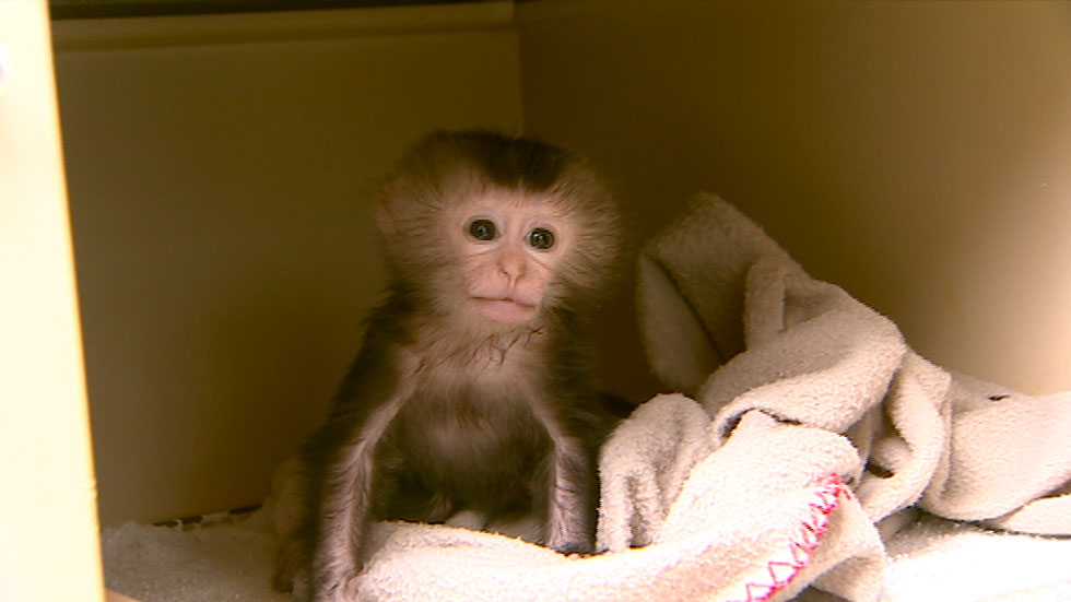 Macaco criada a biberón en el zoo de Santillana del Mar