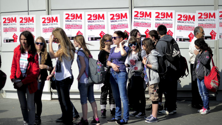29/03/2012 00:01:34Pero hay manifestaciones no sólo en Madrid. Por la mañana en Vigo o Sevilla y a esta hora en otras capitales, diferentes marchas han recorrido esta tarde las calles de otras capitales a lo largo de toda España. En Barcelona la manifestación más multitudinaria ha recorrido el Paseo de Gracia hasta Plaza de Cataluña. Miles de personas se han congregado bajo el lema "se lo quieren cargar todo". La gran afluencia de ciudadanos ha complicado el avance de la manifestación. Los sindicatos han vuelto a reclamar al gobierno que negocie. En la cabecera, además de los sindicatos mayoritarios, estaban representantes de los partidos de izquierda: Socialistas, Iniciativa y Esquerra Republicana. Los sindicatos vascos han vuelto a manifestarse por separado hoy en Bilbao, Vitoria y San Sebastián. La mayoría nacionalista ha salido a la calle con diferentes colectivos como ecologistas, feministas o parados bajo el lema ¿por los derechos laborales¿. Manifestación también por las principales calles del centro de Valencia en una multitudinaria manifestación. La jornada de protesta ha transcurrido sin incidentes destacables y la manifestación ha puesto la imagen masiva a la convocatoria de huelga general.
