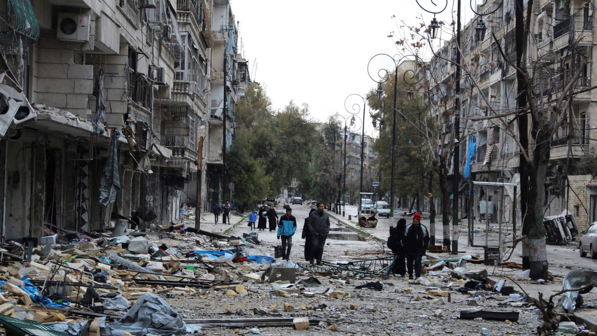 Foto: Imagen de archivo (14/12/2016) que muestra a varias personas mientras inspeccionan una calle cubierta de escombros en un barrio del este de Alepo (EFE/STR)