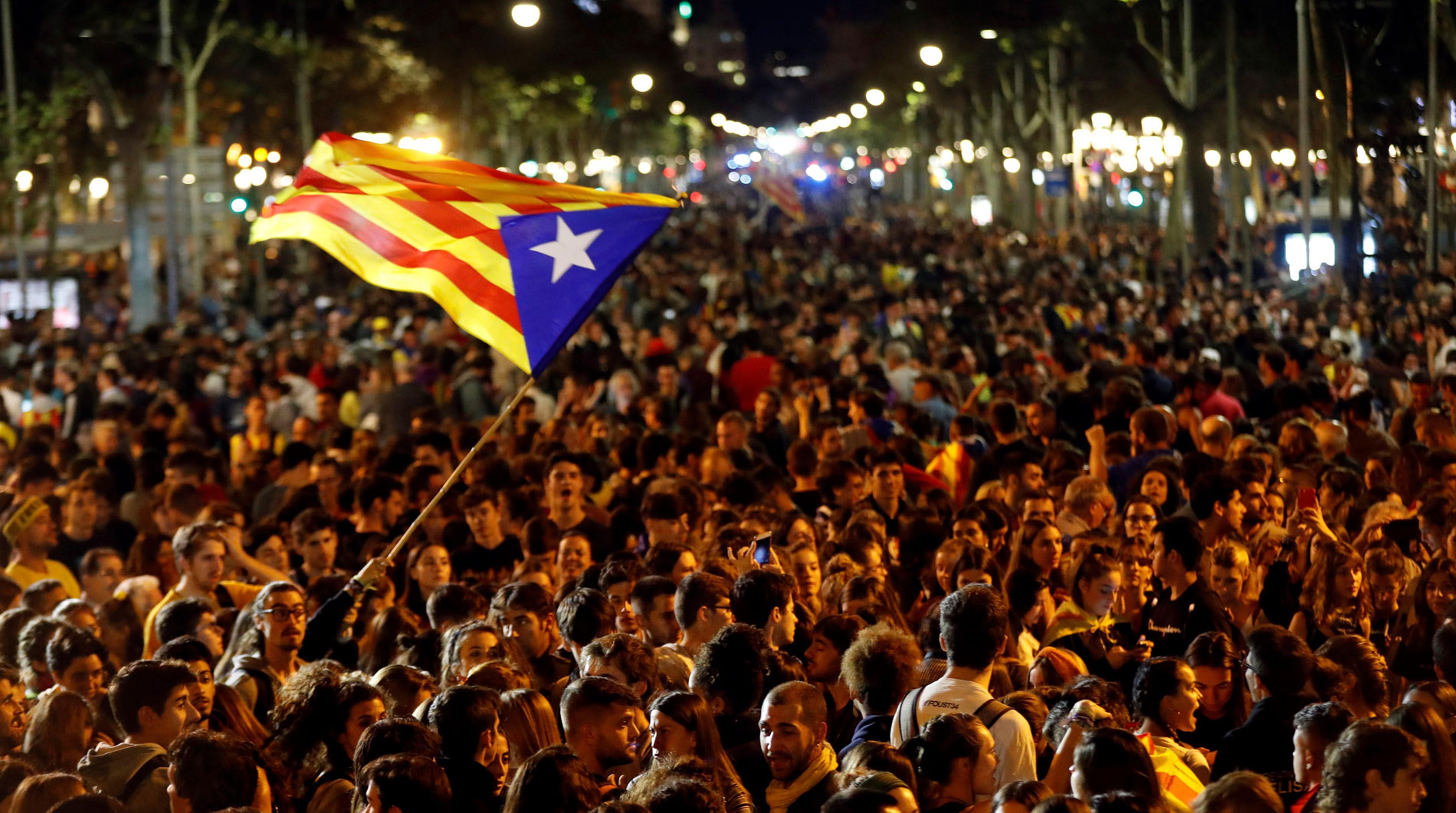 En la cuarta noche de protestas en Barcelona miles de personas convocadas por los CDR se han concentrado en los Jardines de Gracia, en una...