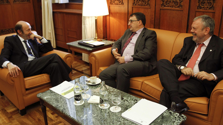 El secretario general de los socialistas, Alfredo Pérez Rubalcaba, se ha reunido con los líderes de CiU y del PNV. Y de esas reuniones ha salido la coincidencia de que en estas semanas se tiene que conseguir el acuerdo. Rubalcaba habló ayer con Rajoy y está seguro de que volverá a hablar en los próximos días.