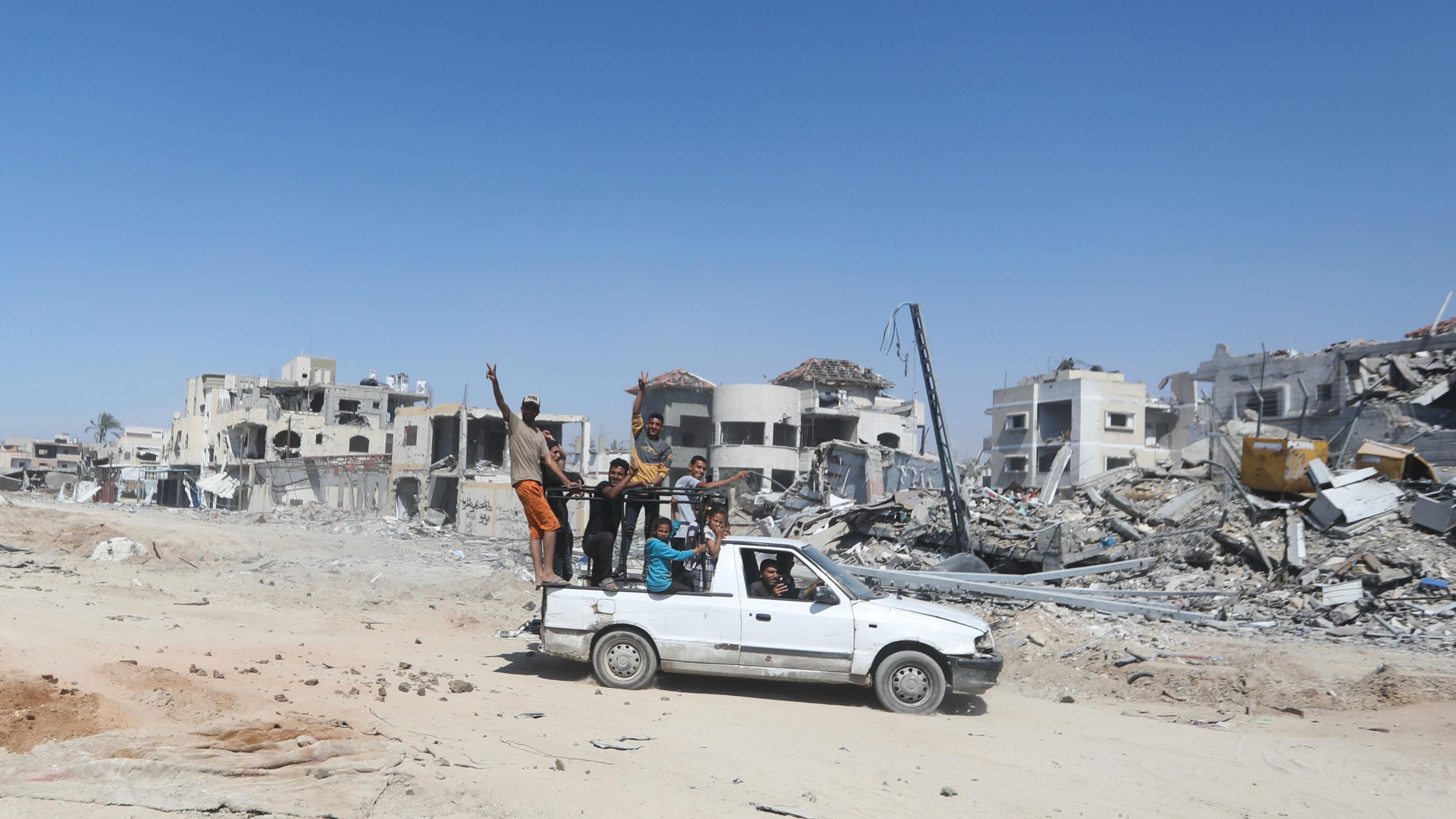Parte de la población de Jan Yunis regresa a su ciudad tras la retirada israelí