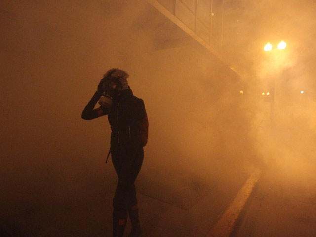 La Policía reprimió con gas lacrimógeno a los activistas del movimiento Occupy (similar al 15M) en las calles de Oakland, California (EE.UU.)...