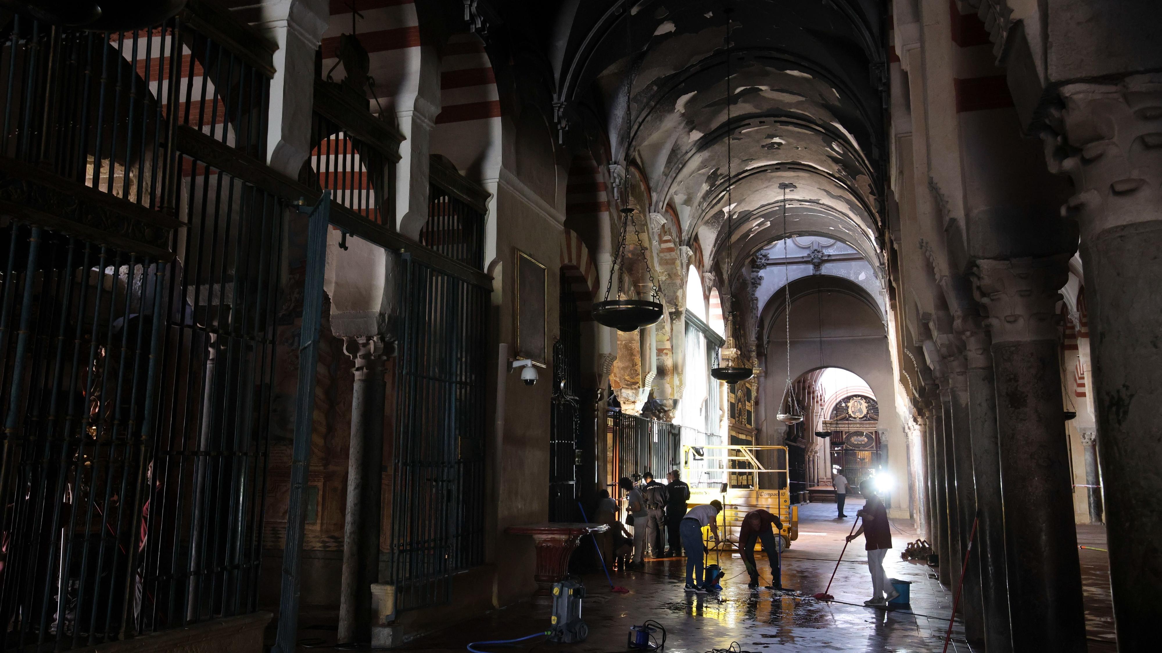Los trabajos para la restauración de la Mezquita de Córdoba ya han empezado, este lunes, desde el exterior del monumento. La policía científica y los técnicos especializados continúan analizan las causas que provocaron el fuego. La nueva obra costará un millón de euros: "Se está presentando ya la documentación para pedir los permisos correspondientes para retirar los escombros, limpiar...", indica la Consejera de Cultura de la Junta de Andalucía, Patricia del Pozo. El incendio se originó en una capilla donde había múltiples elementos de limpieza, entre ellas, una barredora eléctrica que pudo haber tenido un cortocircuito y haber sido la causante del desastre, según las primeras hipótesis.