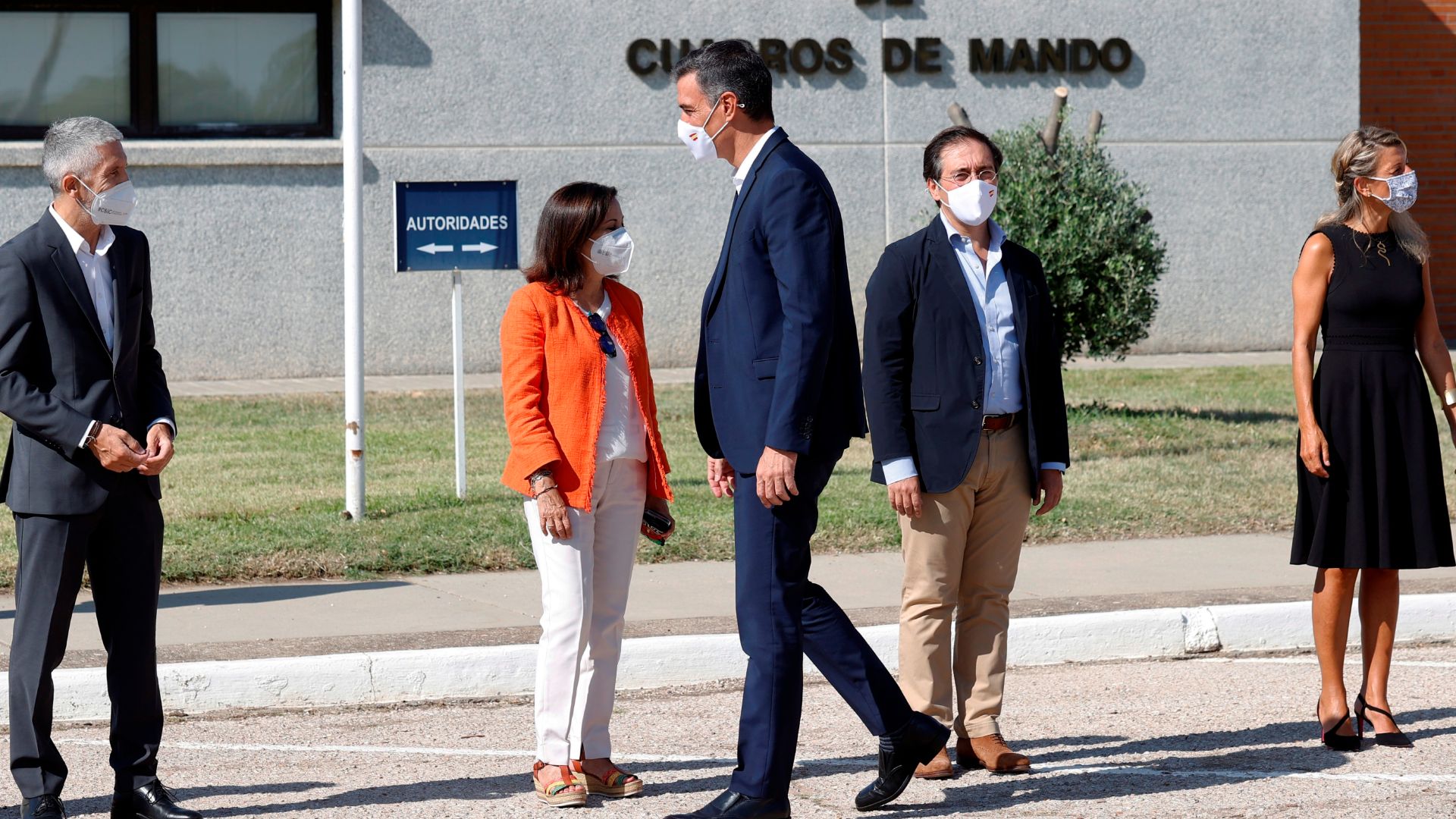 Foto: Los ministros de Interior, Fernando Grande-Marlaska, Defensa, Margarita Robles, Exteriores, José Manuel Albares, y Trabajo, Yolanda Díaz, junto al presidente del Gobierno, Pedro Sánchez. EFE/Chema Moya