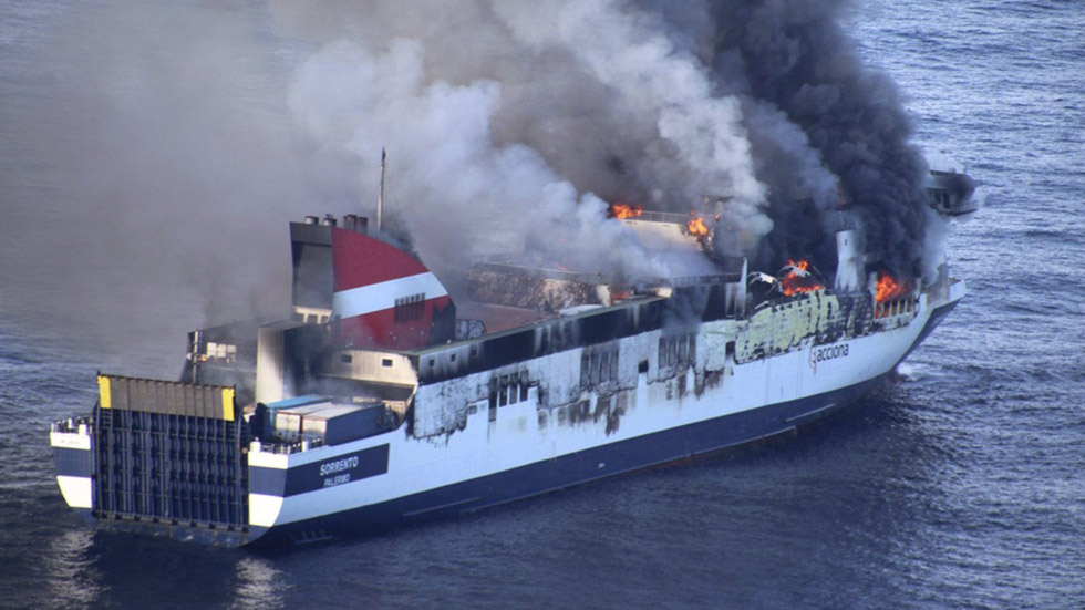 El incendio en el ferry Sorrento, que había partido en torno al mediodía del puerto de la capital balear hacia Valencia, se ha producido cuando el buque ya había recorrido unas 30 millas de una ruta que se prolonga durante unas 140 millas náuticas. A bordo iban 156 ocupantes, de los cuales unos 50 son miembros de la tripulación y el resto viajeros, según ha concretado Transmediterránea. La mayoría de los pasajeros, 78, son conductores de los camiones embarcados.