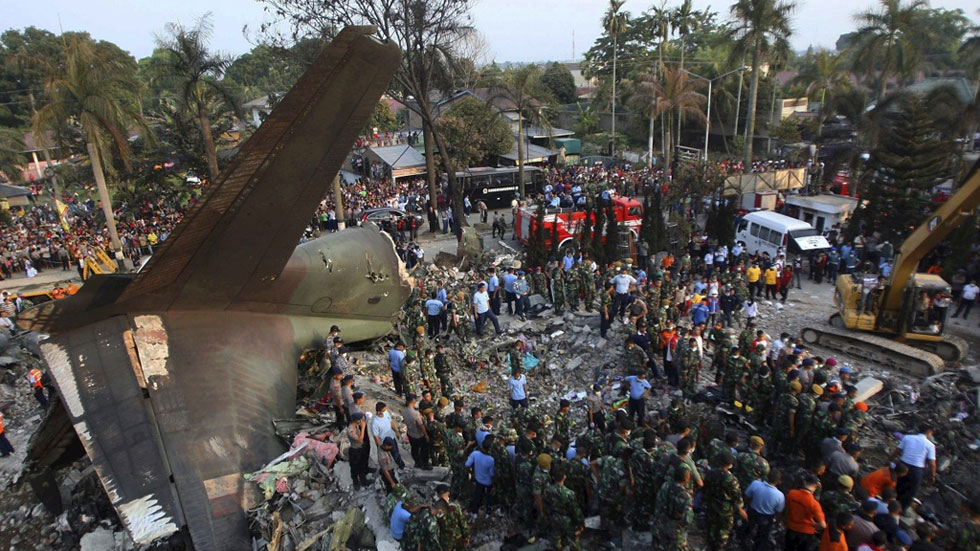 Decenas de muertos al estrellarse un avión del Ejército de Indonesia en una zona residencial de Sumatra
