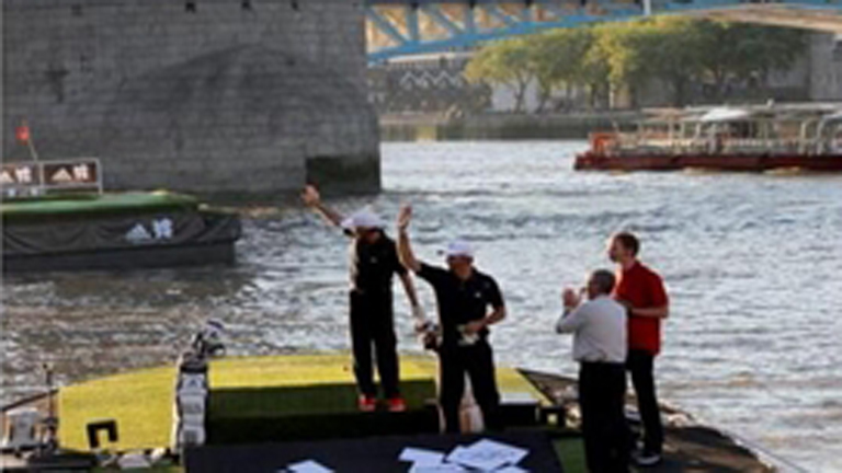 Sergio García y Dustin Johnson juegan al golf en el Tamesis
