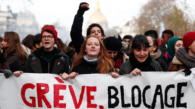 Por sexto día consecutivo, estudiantes, profesores y sindicatos han protetado contra la reforma de las pensiones que propone el gobierno galo a...