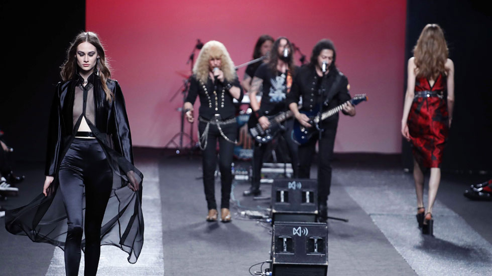 Moda y el rock de Medina Zahara han acompañado a los diseños de Juana Martín. La noche glamurosa de Malne, y la motera y rebelde María Ke Fisherman en la pasarela de Madrid.