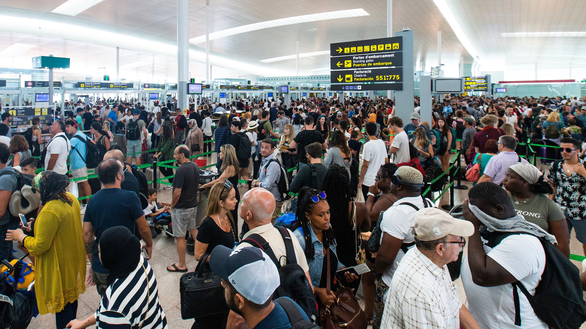 En la Terminal 2 del Aeropuerto de Barcelona se están produciendo largas colas a primera hora de la mañana, mientras que en la T1 la situación es de normalidad con esperas de máximo 15 minutos. La T2, a las 09:00 horas de este viernes, ya mostraba las primeras consecuencias de la huelga con colas de hasta una hora en el marco de la primera jornada de huelga de los encargados de los filtros de seguridad, según han informado los trabajadores del aeropuerto a Europa Press.