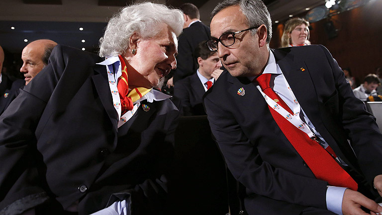 Doña Pilar de Borbón se ha mostrado "muy contenta por cómo ha ido la exposición" de la candidatura de Madrid 2020. "Las palabras del príncipe...