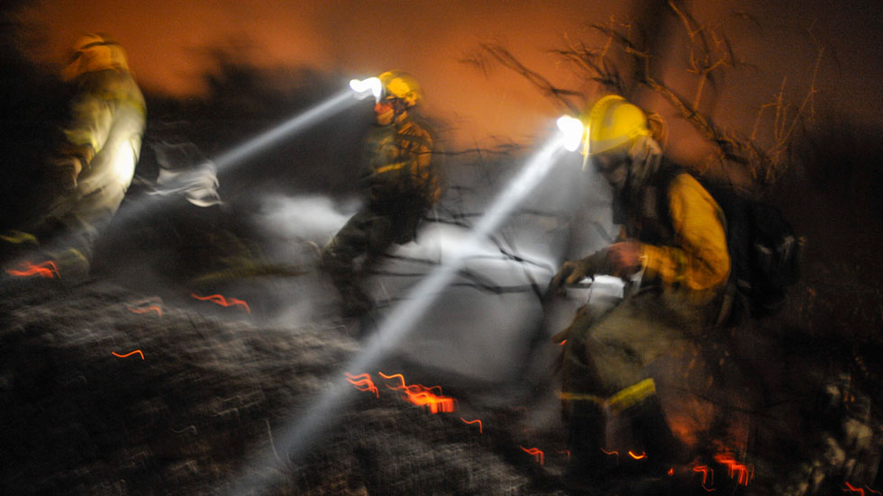 Durante toda la noche, y sin descanso, han trabajado los equipos de extinción para intentar que el fuego de Cualedro, en Ourense, no se extendiera....