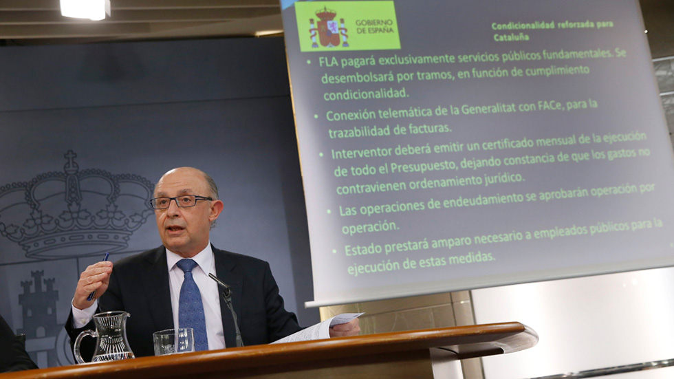 El Gobierno ha aprobado el reparto de los excedentes del Fondo de Liquidez Autonómico para todas las comunidades autónomas y que asciende a 7.889 millones de euros. El Ejecutivo ha anunciado que el reparto de esos fondos tendrá una "condicionalidad específica para Cataluña", a la que se le han asignado 3.034,84 millones, para evitar que se paguen "veleidades independentistas". Esta "condicionalidad específica para Cataluña" se justifica, según Sáenz de Santamaría, por la rebaja del rating de su deuda, por los fallos en la comunicación -como el afloramiento de más de 1.300 millones de déficit de 2013-, y "riesgo derivado por manifestaciones de representantes de la comunidad" de que no pagarán deudas de proveedores -como las de las farmacias- y de que no cumplirán las leyes del Estado.