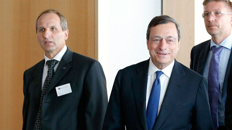 El presidente del Banco Central Europeo (BCE), Mario Draghi, ha defendido la legalidad de la compra de deuda soberana, en una reunión a puerta...