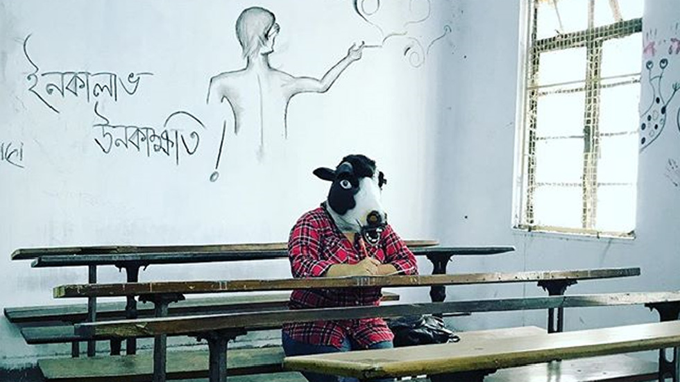 Ha publicado en internet fotografías de mujeres cubiertas con una cabeza de vaca hecha de cartón porque le indigna que en la India las vacas sean...