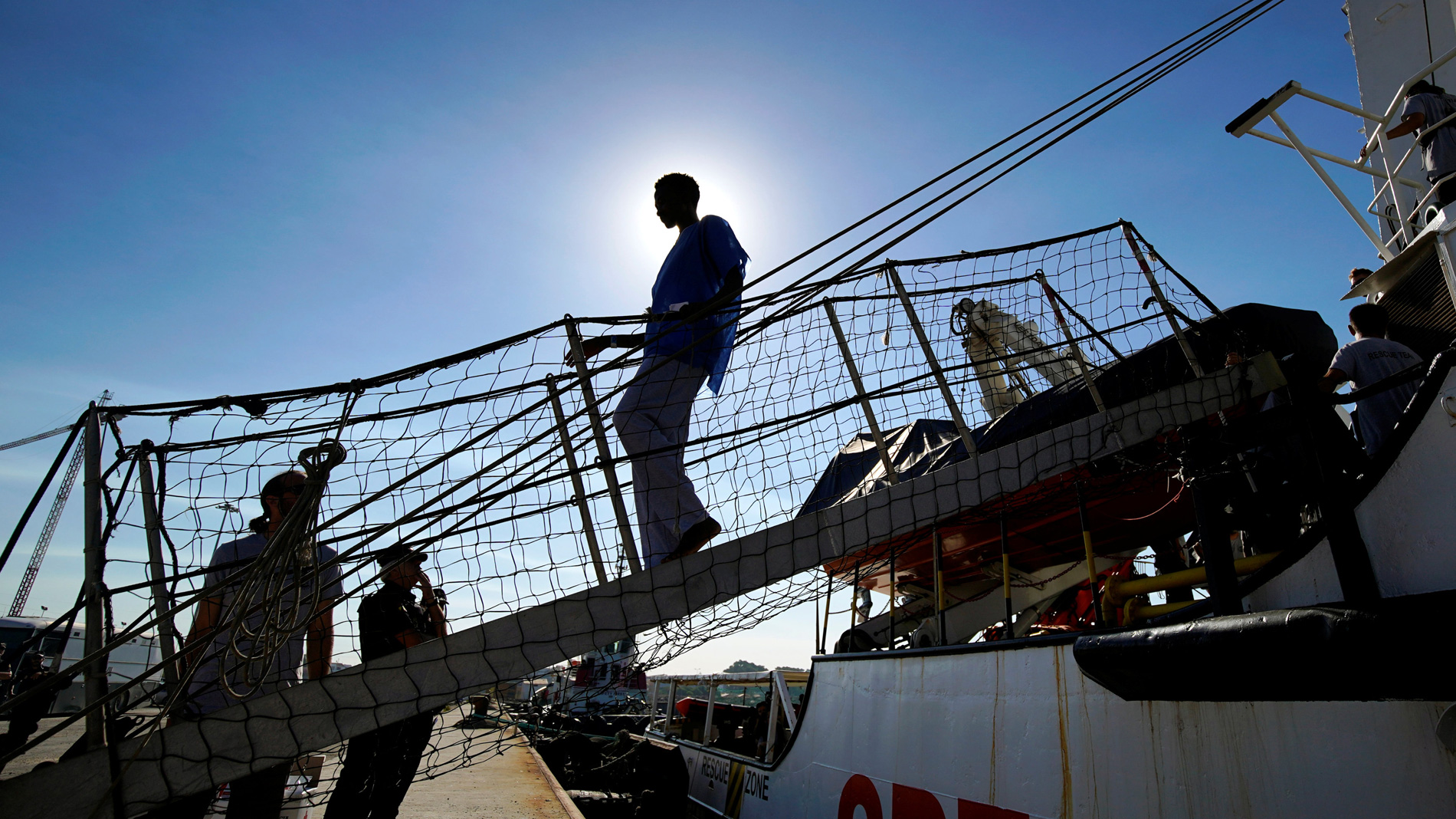 La tripulación del Open Arms pone a punto el barco para regresar al mar