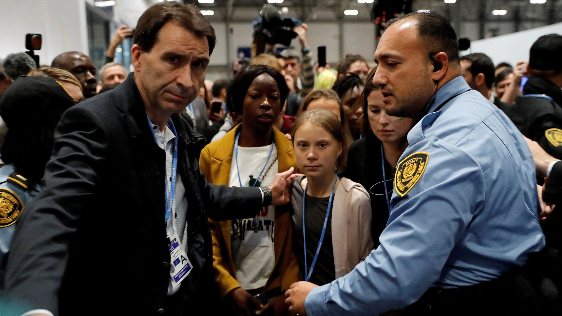 06/12/2019 00:04:25Greta Thunberg llega a Madrid en tren desde Lisboa, rodeada por decenas de cámaras y periodistas. -- Da una rueda de prensa y después, veremos a...