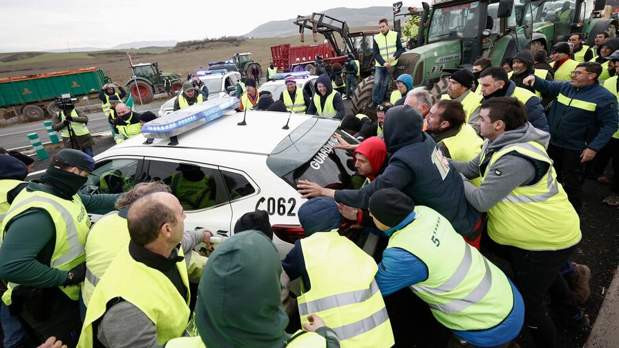Momentos de tensión entre agricultores y fuerzas de seguridad en Navarra, en el tercer día de movilizaciones del campo -- Conmoción en Castro...