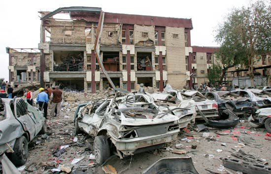 Más de cien personas han muerto en 5 atentados simultáneos en Bagdad. Hay 200 heridos. Los ataques, con coches bomba, se han dirigido contra el Palacio de Justicia, dos ministerios, una universidad y una patrulla de Policía.