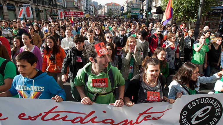 14/11/2012 00:03:49Los sindicatos hablan de seguimiento mayoritario de la huelga y el Gobierno destaca la normalidad. Donde más se está notando el paro es en la industria y los líderes sindicales aseguran que el seguimiento en la sanidad es del 56 % y en la educación hablan de un 75%. Sin embargo son mucho menores los datos que dan los gobiernos autonómicos. Tanto en esos sectores como en el transporte se están cumpliendo los servicios mínimos. Al haberse cancelado la mayoría de los trenes de largo y medio recorrido hoy no circula ninguno en ciudades como León o Logroño. Está siendo desigual el seguimiento en el comercio y la hostelería. El consumo eléctrico ha caído un 12,14% respecto a la demanda prevista. Desde medianoche cuando comenzó la jornada de huelga no se han producido incidentes graves, aunque ha habido algunos enfrentamientos aislados entre piquetes y policía. Hay 82 detenidos y 34 heridos, 18 de ellos policías. -- Gobierno y PSOE seguirán negociando esta tarde la reforma de la legislación sobre desahucios; el Consejo de Ministros aprobará mañana el decreto que podría tramitarse como proyecto de ley, lo que permitiría introducir modificaciones durante su paso por el congreso. -- En Pekín se ha clausurado el congreso del Partido Comunista Chino. Han elegido al Comité Central que mañana designará a los máximos líderes del partido, encabezados por Xi Jinping. Entre otras medidas, han aprobado reformar la constitución para proteger el medio ambiente.