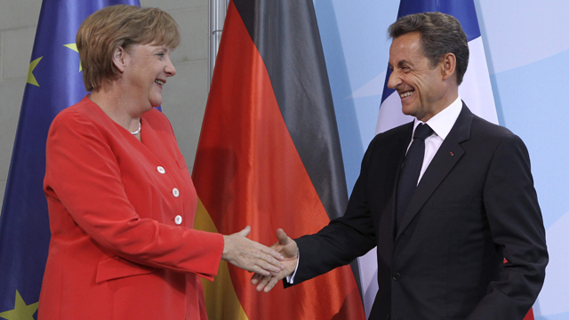Merkel y Sarkozy llegan a un acuerdo para el segundo rescate a Grecia. Proponen actuar con rapidez y que la participación de los bancos sea voluntaria. El consenso en este último punto allana el camino para resolver el estancamiento de las negociaciones en la Unión Europea. Los dos coinciden además en la necesidad de pactar un plan conjunto con el Banco Central Europeo. Merkel y Sarkozy han pedido a la oposición griega que apoye las medidas del Gobierno de ese país. Hoy precisamente han tomado posesión de sus cargos los nuevos ministros y todas las miradas están puestas en el responsable de finanzas. Ese acuerdo entre las dos principales potencias europeas se ha recibido en los mercados con optimismo y la Bolsa de Madrid ha llegado a subir cerca del dos por ciento. Ese acuerdo entre Alemania y Francia ha rebajado también la presión sobre la deuda española y la prima de riesgo se aleja de los máximos que registró ayer.-- En Barcelona hoy declaran ante el juez cinco de los detenidos en relación con los incidentes del miércoles cuando un grupo de indignados intentó bloquear los accesos al Parlament de Caraluña. Los mossos los han trasladado durante la mañana a la Ciudad de la Justicia de Barcelona. En principio están acusados de delitos de resistencia y desobediencia a la autoridad y también de daños, aunque la investigación sigue abierta y podría haber más personas implicadas.-- Hoy los portavoces del 15M han vuelto a rechazar la violencia y acusan al gobierno catalán de utilizar conductas aisladas para desprestigiar a todo el movimiento. Y sobre la acampada que un pequeño grup de indignados mantiene en la Plaza de Cataluña el conseller de interior de la Generalitat ha dicho que ya no puede durar mucho tiempo porque está impidiendo que miles de ciudadanos disfruten de ese espacio común. --Detienen en un tren en Francia al presunto etarra Iñaki Domínguez Atxalandabaso. Está imputado en la causa sobre los vínculos de ETA y las FARC y es uno de los miembros de ETA más buscados. -- Domínguez Atxalandabaso llevaba una maleta con componentes electrónicos similares a los que ETA utiliza para fabricar bombas y activarlas a distancia. No iba armado. Su billete de tren tenía salida en Turín y destino en Chambery, localidad del este francés cercana a Lyon. -- Las Administraciones Públicas ya acumulan hasta marzo una deuda de casi 680.000 millones de euros. Según los datos del Banco de España, la deuda autonómica sube más del 26% y por primera vez supera el 11% del Producto Interior Bruto.-- El Secretario General de la OTAN condena los ataques de las tropas sirias a civiles, pero descarta la intervención de la Alianza. En los Desayunos de TVE, Rasmussen asegura que España debe estar satisfecha al conseguir un mando aéreo importante para las operaciones militares del futuro, a cambio del cuartel de Retamares en Madrid.