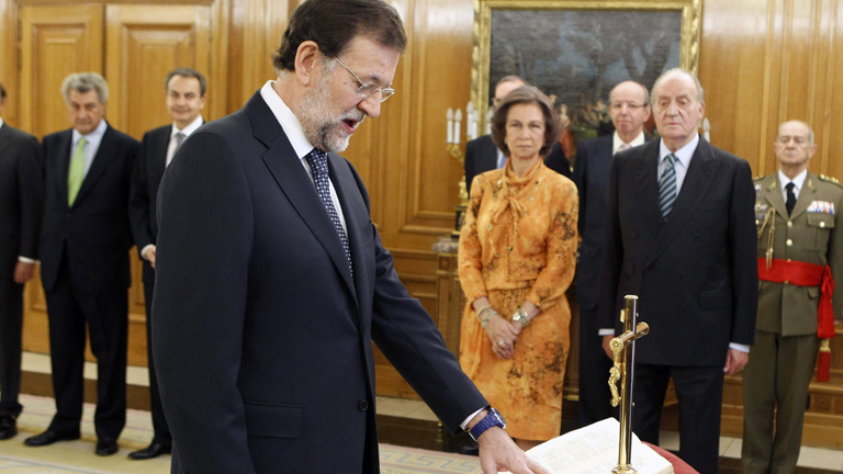 21/12/2011 00:04:05Mariano Rajoy es ya presidente del Gobierno, el sexto de la democracia. Poco después de las 11 de la mañana ha jurado su cargo en el Palacio de la Zarzuela ante los Reyes y en presencia de los presidentes del congreso y el senado y el ministro de justicia en funciones que ha actuado como notario mayor del Reino. También han estado el ya expresidente José Luis Rodríguez Zapatero y los presidentes del Tribunal Constitucional y el Consejo General del Poder Judicial. Después del juramento Mariano Rajoy ha hablado durante varios minutos con Don Juan Carlos y esta tarde volverá a la Zarzuela para comunicarle los nombres de sus ministros y la estructura de su Gobierno. Y aunque hay muchas quinielas el hermetismo es total. Después Mariano Rajoy ha entrado por primera vez en el Palacio de la Moncloa ya con su cartera de presidente del Gobierno. Antes ha posado para los periodistas en la puerta de la que será su residencia a partir de hoy y dónde el viernes se reunirá por primera vez el nuevo Gobierno. Le han acompañado a Moncloa Jorge Moragas, su jefe de gabinete en el PP, y Carmen Martínez Castro, su jefa de prensa desde hace cinco años. -- La noticia económica del día es el préstamo de casi medio billón de euros del BCE a 523 bancos, prácticamente todos los de la zona euro. Se han superado todas las previsiones de esta primera subasta que se ha hecho en condiciones excepcionales con el objetivo final de facilitar el crédito a empresas y familias. Las entidades tienen tres años para devolver el dinero que han conseguido a un interés fijo del 1%. -- Dirigentes socialistas, entre ellos Carme Chacón y otros exministros, presentan hoy el manifiesto "Mucho PSOE por hacer", un documento muy autocrítico. Dicen que no se trata de una plataforma de apoyo a nadie pero Marcelino Iglesias cree que podría ser el inicio de la candidatura de Carme Chacón para liderar el partido.-- Organizaciones catalanas de usuarios de la sanidad y de pensionistas consideran inaceptable el pago de 1 euro por receta sin tener en cuenta la renta o las enfermedades crónicas. La medida anunciada por la Generalitat establece un tope de 61 euros por persona al año. Los farmacéuticos no ven claro que tengan que ser ellos los que recauden esa tasa. -- Declaran culpable de asesinato al hombre acusado de matar de 82 puñaladas a su pareja en la localidad madrileña de Brunete hace casi dos años. El jurado popular considera que actuó con alevosía y ensañamiento y con la agravante de parentesco. Ahora el juez tiene que fijar la pena.-- La cantante Pastora Soler representará a España en el próximo festival de Eurovisión que será en Azerbaiyán. La canción será elegida por un sistema mixto, con jurado y voto popular. Pastora Soler lleva 17 años en la música y ha conseguido 3 discos de platino y 4 de oro.
