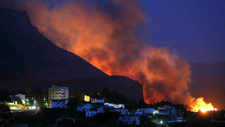 24/09/2012 00:03:27El incendio de Valencia sigue sin control y afecta a seis pueblos de la comarca de Los Serranos. Unos 2.000 vecinos de Chulilla, Gestalgar, Pedralba, Bugarra, Lliria, y Sot de Cheras han tenido que dejar sus casas por el avance de las llamas. A los efectivos que han estado toda la noche trabajando sobre el terreno para apagar el fuego se han unido los medios aéreos. Su trabajo está siendo muy complicado por las fuertes rachas de viento que soplan en la zona. El incendio tiene cuatro frentes activos y todavía no se sabe que lo originó aunque se investigan varias hipótesis. El ministro Arias Cañete no descarta pedir a la Unión Europea medidas de apoyo a España porque este año se han quemado 200.000 hectáreas casi la misma superficie que Luxemburgo. -- Empieza una semana clave en Cataluña con las miradas puestas en el debate de política general en el Parlament. CiU presentará en ese debate una moción sobre lo que llaman el derecho a decidir, de la que Artur Mas, no ha querido adelantar nada, y que están intentando consensuar con el resto de los partidos nacionalistas. Alfredo Pérez Rubalcaba ha sugerido la posibilidad de reformar la constitución para avanzar hacia un estado federal. Poco después la secretaria general del PP ha anunciado que su partido ha aprobado hoy una declaración en defensa de la Constitución y del actual modelo autonómico. -- Las direcciones del PSOE y del PP de Galicia deciden en las próximas horas si toman medidas contra sus alcaldes imputados en la operación Pokémon: el de Ourense, el socialista Francisco Rodríguez, que se negó anoche a dimitir, y el de Boqueixon, el popular Adolfo Gacio. Mientras, la juez sigue tomando declaración a otros implicados. -- Son ya nueve los alpinistas muertos por la avalancha del domingo en el Himalaya, entre ellos el español Martí Gasull. Los equipos de rescate buscan, además, a tres desaparecidos. El accidente ha hecho que Gobierno de Nepal se plantee limitar el número de alpinistas que suben al Himalaya.-- 65.000 conductores perdieron el carné el año pasado y 700 fueron a la cárcel por delitos de tráfico. Según el Fiscal para la Seguridad Vial, los juicios aumentaron un 36 por ciento en 2011.-- Buscan en Zaragoza a una mujer de 29 años después de que un joven se suicidara y dejara una nota en la que confesaba que había matado a una amiga. Más de cien agentes rastrean una zona entre las localidades de María de Huerva y Muel.