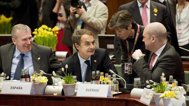 25/03/2011 00:04:05El presidente del Gobierno ha anunciado en Bruselas una serie de medidas para reforzar la respuesta a la crisis económica que se enmarcan dentro del pacto por el euro. La mayoría están ya en marcha, previstas o anunciadas y entre las novedades un plan contra la economía sumergida y la reforma de ley de estabilidad presupuestaria para poner un techo de gasto a la Administración del Estado dependiendo del crecimiento del PIB. Los 27 han alcanzado un acuerdo para crear un fondo permanente para los países con problemas de deuda. Y José Luis Rodríguez Zapatero ha transmitido toda su solidaridad a Portugal y está convencido de que superará la situación actual y también de que las medidas acordadas hoy permitirán salir de la crisis.-- En un comunicado, además, los 27 han dejado claro su apoyo a la intervención militar en la guerra de Libia. La OTAN se prepara para asumir en cuestión de horas el mando de todas las operaciones, incluidos los ataques terrestres para proteger a la población civil. Emiratos Árabes se ha unido a la coalición internacional con 12 aviones. El régimen libio ha mostrado a la prensa los daños causados por los bombardeos de la coalición internacional. Gadafi asegura que hay víctimas civiles por esos ataques. Los rebeldes aseguran que desde que se inició la revuelta hace cinco semanas han muerto entre 8.000 y 10.000 personas y el número puede ser mayor porque no tienen datos de la capital. En Yemen el presidente se ha dirigido a sus partidarios mientras el ejército trataba de dispersar a los opositores. -- En Japón el primer ministro ha prometido transparencia sobre la situación en Fukushima y reconoce que de momento es muy grave. muy precaria y hay que esta preparados para cualquier circunstancia. La elevada radiactividad dificulta el trabajo para refrigerar la central nuclear. Se ha ampliado el perímetro de seguridad y han pedido a quienes viven en la franja situada entre 20 y 30 kilómetros de la central que abandonen sus casas y vayan a los refugios. El miedo aumenta también en Tokio porque además de la contaminación del agua han encontrado residuos radiactivos en verduras cultivas en esa zona situada a 250 kilómetros de Fukushima. Dos semanas después del terremoto y el tsunami siguen los temblores y son más de 27.000 muertos y desparecidos.-- La izquierda abertzale pone en marcha su Plan B para intentar presentarse a las próximas elecciones. Según ha podido saber TVE, esta vez no será un partido, como Sortu, sino una coalición electoral con Eusko Alkartasuna, y se llamará Bildu, reunir.-- El Consejo de Ministros aprueba la reforma de las pensiones que sube a 67 años la edad de jubilación y aumenta el número de años para calcular la pensión. El texto se debatirá ahora en el Parlamento.-- Candidatos del PP a alcaldías de toda España presentan en Toledo las líneas básicas de su programa para las elecciones municipales. Incluye 120 propuestas marcadas por la austeridad. La Secretaria General del partido acusa al Gobierno de resignarse ante la crisis.-- Baltasar Garzón presenta una demanda contra el Supremo ante el Tribunal europeo de Derechos Humanos. Dice que su procesamiento por investigar los crímenes del franquismo vulnera la independencia de los jueces y también el Estado de Derecho porque deja indefensas a las víctimas.