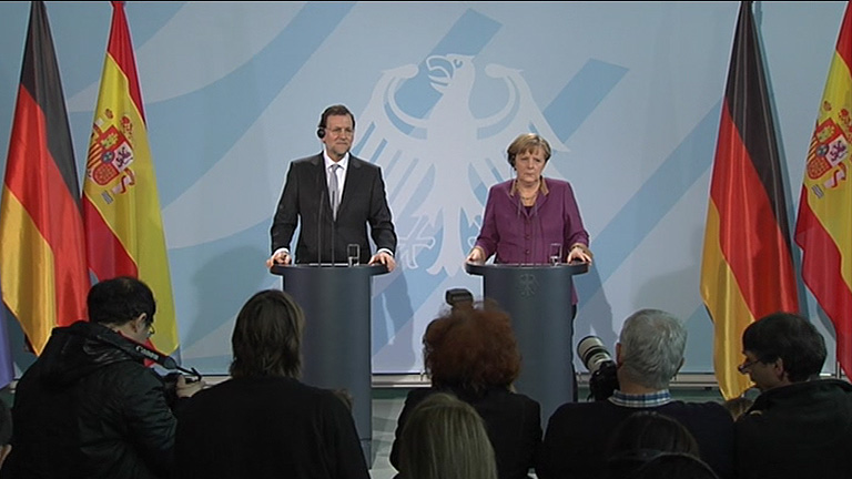26/01/2012 00:04:16Mariano Rajoy defiende en Berlín ante Angela Merkel las medidas de ajuste del Gobierno. Han hablado de la crisis económica y de la próxima cumbre europea. El presidente del Gobierno ha recibido honores militares en el patio de la cancillería donde los dos líderes políticos han escuchado los himnos nacionales junto a una escultura de Eduardo Chillida. Después en el almuerzo de trabajo Mariano Rajoy ha dicho en la rueda de prensa que han ofrecido juntos que sabe que este año va a ser muy duro pero asegura que los ajustes son necesarios para garantizar el futuro de nuestro país. Ha insistido en su compromiso de reducción del déficit pero cree que eso no es suficiente para la recuperación. -- El ex presidente de la Generalitat valenciana dice que está muy satisfecho con el veredicto del jurado. Y en sus primeras declaraciones después de conocer la decisión ha asegurado que ha merecido la pena ponerse frente al sistema para demostrar su inocencia. Los socialistas valencianos, como acusación particular, estudian la posibilidad de recurrir una vez que se conozca la sentencia, aunque deberá ser la Fiscalía la que dé el primer paso. -- El vicesecretario general del PSOE y exministro de Fomento José Blanco ha declarado en el Supremo como imputado en el caso Campeón. Lo ha hecho a petición propia, sin esperar a que el Tribunal pidiera el suplicatorio necesario al congreso por ser diputado. --Primera comparecencia del Ministro de Hacienda y Administraciones Públicas en el Congreso. Y en vísperas de que se haga pública la Encuesta de Población Activa, Cristóbal Montoro ha avanzado que en 2011 el paro aumentó hasta los 5,4 millones de personas. El ministro Montoro descarta nuevas subidas de impuestos y anuncia estímulos fiscales para pymes, autónomos y emprendedores, antes de abril. El PSOE pide que el Gobierno negocie con Bruselas ampliar los plazos para reducir el déficit. -- Primera reunión del ministro de Educación, José Ignacio Wert, con todos los consejeros autonómicos. Según algunos asistentes, Wert les ha planteado reducir un año la enseñanza secundaria y ampliar un año el bachillerato. También les ha propuesto que no convoquen plazas para profesores este año. Canarias y Andalucía se oponen-- La policía francesa detiene Jean-Claude Mas, fundador de la empresa que fabricó los implantes mamarios defectuosos PIP. Le han arrestado en su cada de la Costa Azul en relación con una investigación por presunto homicidio y lesiones involuntarias. Mas está también a la espera de juicio por estafa.-- 68.000 personas han sido atropelladas en España entre 2005 y 2010, según un estudio de la Fundación Mapfre. Cada día, 20 niños resultan heridos. La mayoría de los atropellos ocurren en ciudades y en semáforos o pasos de cebra, debido a infracciones del conductor o imprudencias de los peatones.