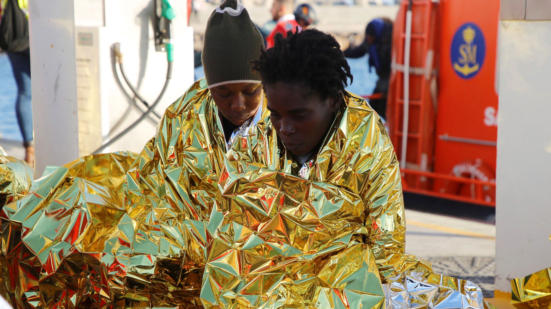 Los últimos inmigrantes que han llegado al puerto de Melilla, cerca de 30 personas que llevaban desde nochebuena en las islas Chafarinas. -- A...