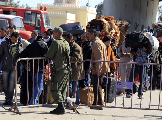 28/02/2011 00:04:40Miles de persona intentan salir de Libia como sea. Se calcula que unas 100.000 han abandonado ya el país y el paso de Ras el Jedir en la frontera de Túnez está colapsado. La mayoría de los esperan son trabajadores egipcios que quieren regresar a su país. Grupos de voluntarios se han sumado a las autoridades fronterizas para tratar de contener la avalancha. Mientras, las noticias que llegan de Trípoli es que Gadafi no se rinde. La crisis en Libia acapara la reunión del Consejo de Derechos Humanos de la ONU en Ginebra con una participación record de ministros de exteriores de todo el mundo. El fiscal general de la Corte Penal Internacional anuncia una investigación preliminar por posibles crímenes de guerra y lesa humanidad cometidos en Libia. La Unión Europea ha ratificado las sanciones a Libia que suponen el embardo de armas y la congelación de las cuentas de Muamar el Gadafi.-- Ya se conoce cual será el convenio colectivo de los controladores aéreos hasta 2013. El laudo entregado esta mañana por el árbitro, el ex ministro Pimentel, establece un sueldo medio de 200.000 euros y una reducción de sus horas de trabajo. Pasarán de las 1711 horas actuales a 1670 este año. Manuel Pimentel ha explicado que a la hora de elaborar este laudo, de obligado cumplimiento por las dos partes, se ha apoyado en el acuerdo firmado en agosto por AENA y los controladores. El objetivo del acuerdo es resolver el conflicto entre la empresa y los trabajadores que se recrudeció cuando en diciembre pasado los controladores abandonaron sus puestos de trabajo, lo que provocó el cierre del especio aéreo español. La inflación anual llega al 3,6 por ciento, su valor más alto desde octubre de 2008. Los precios se han disparado por la subida del petróleo y también de los alimentos y las bebidas no alcohólicas. -- Tres millones de personas sufren en nuestro país alguna de las enfermedades clasificadas como raras. Hoy, en su día mundial, sus familias se quejan de que las farmacéuticas investigan poco porque no lo consideran rentable. -- Roban, de madrugada, 20 fusiles y 10 pistolas en la armería de una base militar de Badajoz. Las primeras investigaciones apuntan a un grupo organizado de delincuentes por la rapidez con la que se ha cometido el robo. Las Fuerzas de Seguridad vigilan la frontera con Portugal.-- La diputada de Nafarroa Bai, Uxue Barkos, se retira temporalmente de la política para operarse de un cáncer de mama. Dice que se siente fortalecida por las altas posibilidades de curación de este tipo de tumor. -- Asturias, Cantabria, el País Vasco y Navarra están en alerta naranja por nevadas que, en algunas zonas, han caído a 500 metros de altura. Las temperaturas han bajado, en general, y ha nevado también en varias provincias de la mitad norte.