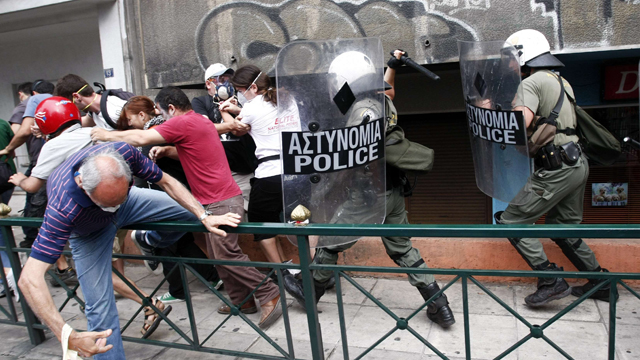 29/06/2011 00:04:03Máxima tensión en Grecia en un día crucial para su futuro. El parlamento vota hoy el plan de ajuste del Gobierno mientras crece la indignación en la calle. La policía ha cargado contra los manifestantes que intentaban impedir la entrada de los diputados en el segundo día de huelga general. Es también el segundo día de enfrentamientos en una ciudad en la que parece que ha habido una batalla campal porque los servicios de limpieza también están en huelga y no se han retirado los destrozos. Toda Europa está pendiente de esa decisión de la que depende que Grecia no vaya a la quiebra y frenar el riesgo de contagio a otras economías. -- Rodríguez Zapatero ha cerrado su última intervención como presidente en el debate del estado de la nación con dos palabras dirigidas al grupo socialista: gratitud y apoyo. Antes ha tendido que responder a las duras críticas del los grupos minoritarios en la segunda jornada del debate. La mayoría han cuestionado su gestión económica y UPN se ha sumado a las peticiones de adelanto de elecciones. Y la diputada de UPyd Rosa Díez ha responsabilizado al Gobierno de la llegada a las instituciones de los que ha calificado como testaferros de ETA. El presidente no ha hablado de Bildu y ha asegurado que la banda terrorista está en su momento más débil gracias a la política antiterrorista. --Un ataque talibán a uno de los hoteles de lujo de Kabul, la capital de Afganistán, deja 26 muertos, entre ellos un español. Era piloto comercial y trabajaba para una compañía turca. Ocho insurgentes han asaltado el hotel Intercontinental, con armas y chalecos con explosivos. Dos helicópteros de la OTAN han participado en la operación de la policía afgana que ha matado a los asaltantes. Este ataque talibán se produce una semana después de que Washington anunciara la retirada de sus tropas en 2014 y coincide con conferencia sobre la transición.-- El Gobierno central y vasco cierran filas en torno a la elección de San Sebastián, gobernada por Bildu, como Capital Europea de la Cultura en 2016. La ministra Sinde rechaza lecturas políticas y el PP le reclama explicaciones en el Congreso. El alcalde de Zaragoza, ciudad también candidata, pedirá que se repita la evaluación de las seis ciudades finalistas sin criterios políticos de si favorece o no la paz.-- Un nuevo fármaco consigue curar al 70% de los enfermos de hepatitis C, combinándolo con los dos medicamentos que se utilizan ahora. Este tratamiento permite además reducir a la mitad el tiempo de curación. La nueva medicina podría venderse en España a partir de otoño. -- El presidente de Venezuela aparece en televisión para zanjar los rumores sobre su salud. Nada se sobre la evolución de Chávez, que fue operado en La Habana el pasado día 10.