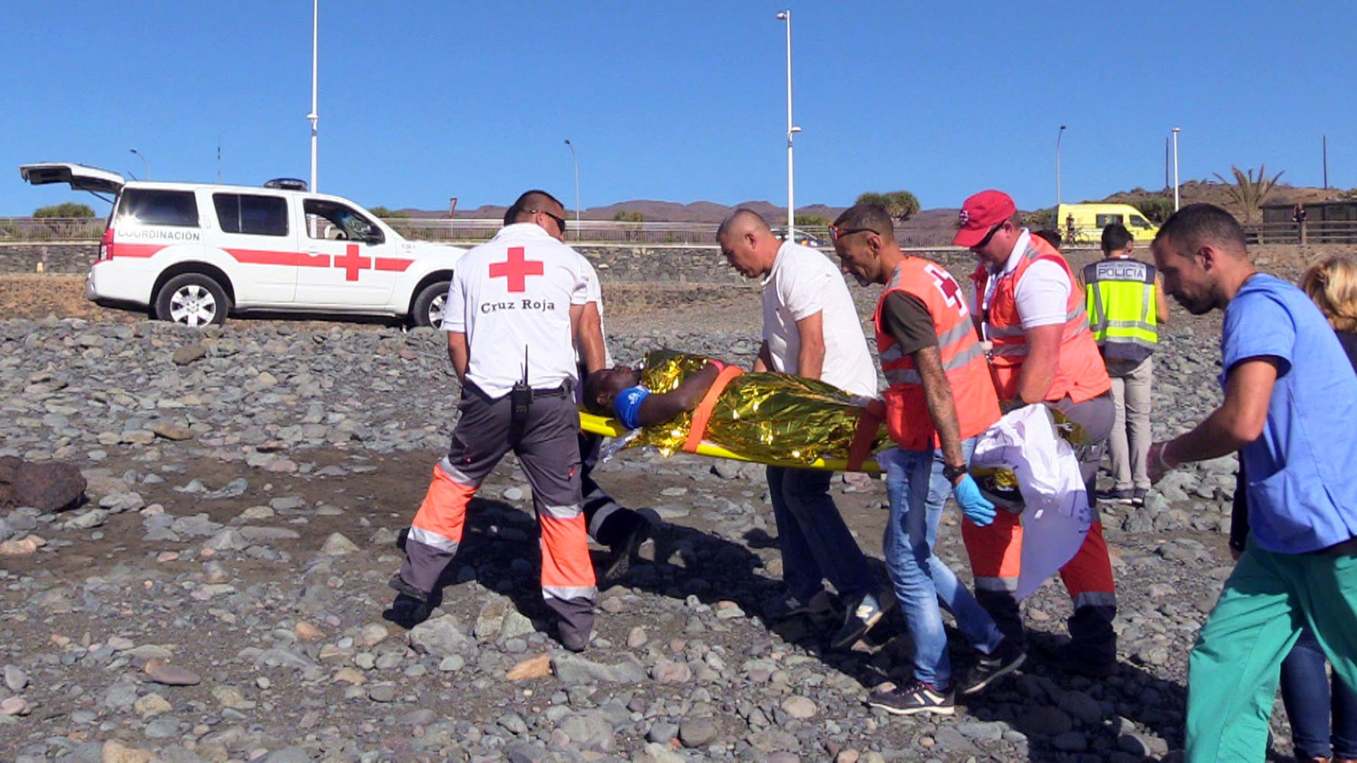 24 inmigrantes han conseguido llegar a la playa del Águila en Gran Canaria y han recibido la primera ayuda de los bañistas. En la embarcación donde...