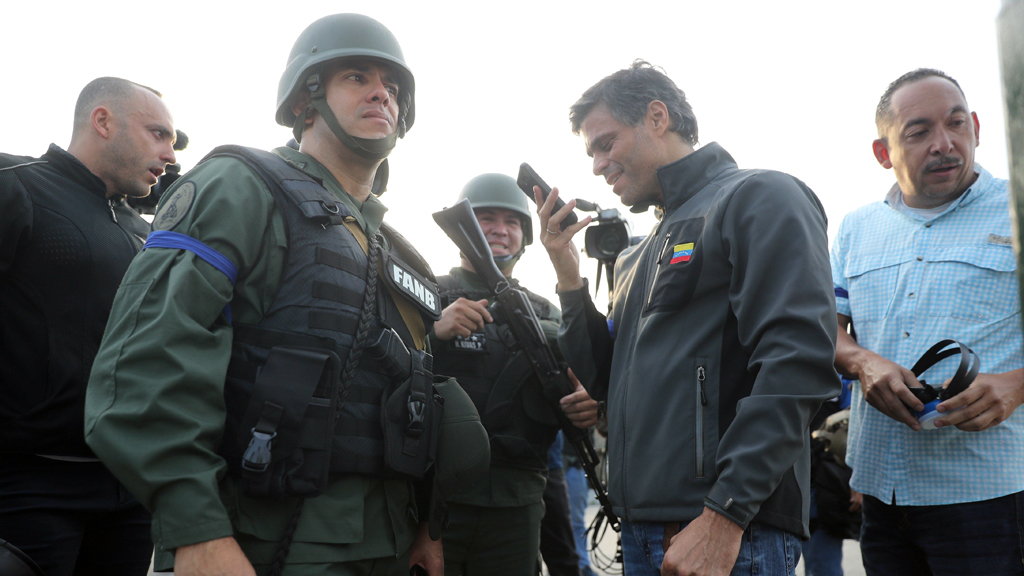 30/04/2019 00:05:34Máxima tensión en Venezuela y primeros enfrentamientos en Caracas tras la liberación del líder opositor Leopoldo López que cumplía arresto...