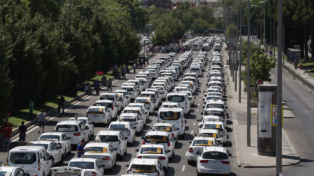 La huelga de los taxistas colapsa el centro de las ciudades. -- La protesta se mantiene, a la espera del resultado de la reunión que mantienen en...
