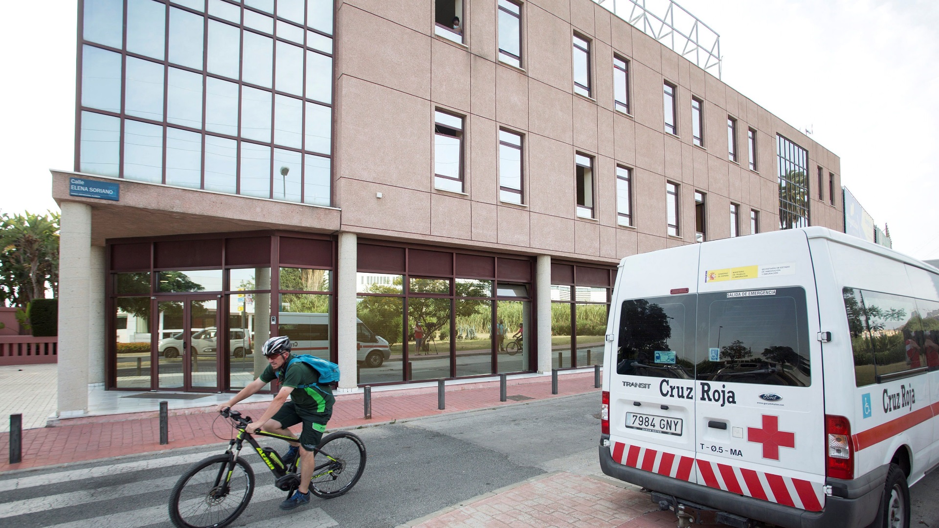 Desinfección el centro de acogida de Cruz Roja en Málaga donde hay más de 80 positivos y donde se están haciendo pruebas a trabajadores y...