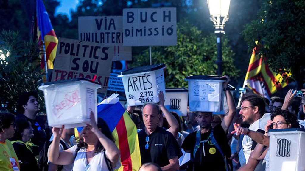Miles de personas participan en Barcelona en una marcha independentista para recordar el primer aniversario del 1 de octubre. Los manifestantes han transportado hasta el Parlament varias urnas como las empleadas en el referéndum ilegal.-- El presidente Torra lanzaba un mensaje a los llamados Comités de Defensa de la República.--Ha habido tensión en Girona, en un acto de protesta de los CDR.-- PP y Ciudadanos piden juntos en el Congreso la comparecencia del presidente Pedro Sánchez. Quieren que explique el deterioro de la política española, dicen, y las amenazas independentistas.-- Los gobiernos de Francia y España han recordado en La Moncloa a las víctimas de ETA.-- Grupos de jubilados han vuelto a protestar pidiendo mejores pensiones, más allá de las promesas.-- Seguimos muy pendientes de los efectos del terremoto y el tsunami en Indonesia. Los servicios de emergencia hablan ya de más de mil muertos. Un equipo de TVE está en la isla afectada.--Canadá se ha unido a Estados Unidos y a México para relanzar el acuerdo de libre comercio NAFTA. Podría firmarse a finales de noviembre. Trump prometió en campaña que renegociaría el tratado porque, según él, perjudicaba a EEUU.-- El español Pablo Ibar se enfrenta a un nuevo juicio en Estados Unidos. Lleva 24 años en prisión, 16 de ellos en el corredor de la muerte, por triple asesinato. El Tribunal Supremo de Florida anuló la pena capital hace 2 años porque consideró que las pruebas eran débiles.-- Una joven de 24 años caminando como una persona de 80. Este traje permite ponerse en la piel de una persona con dificultades para caminar. Es una manera de concienciar en el Día Internacional de las Personas Mayores.-- Ha muerto Charles Aznavour, icono de la canción francesa.